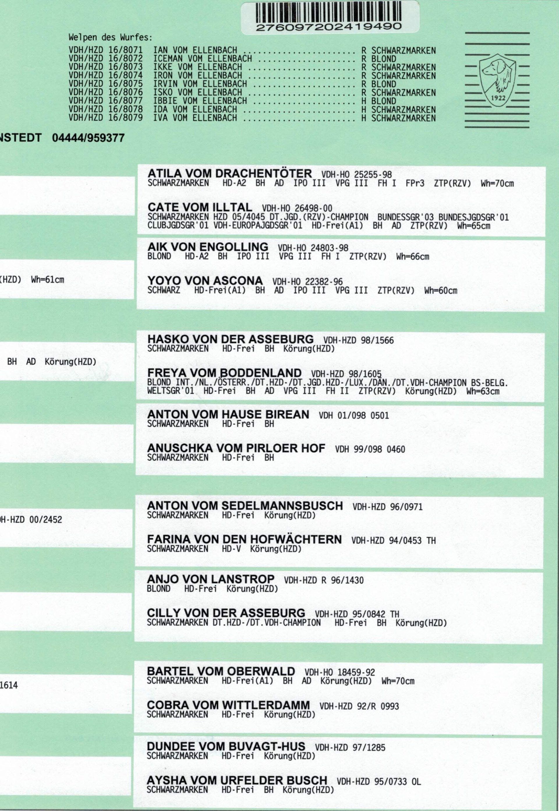 Wir stehen für eine verantwortungsvolle, sehr strenge überwachte und kontrollierte Zucht. Die ausgestellten VDH-Ahnentafeln sind überprüfte Abstammungsnachweise und dokumentieren lückenlos, über Generationen die Gesundheit, bzw. auch die Krankeiten der Hundeahnen.