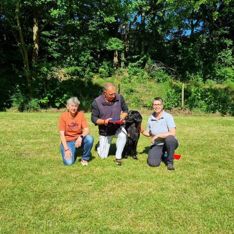 von links die Dinkelhookerfamilie: Bapio (Casper) Verh. III best. und (ZwK) V1, BOS | Charis Verh. II best. und (JüK) o.B. | Chess verh. II n.t. (läufig) und (JüK) vv2 | Andra (OK) V1, beste Hündin | Caatje Verh. II best. und (JüK) vv3 | Aiven (Artos) (OK) V | Caspien Jr. Verh. II best. und (JüK) vv1 | Briese verh. III best. und (ZwK) V1 | Cinya Verh. II best. und (JüK) vv1