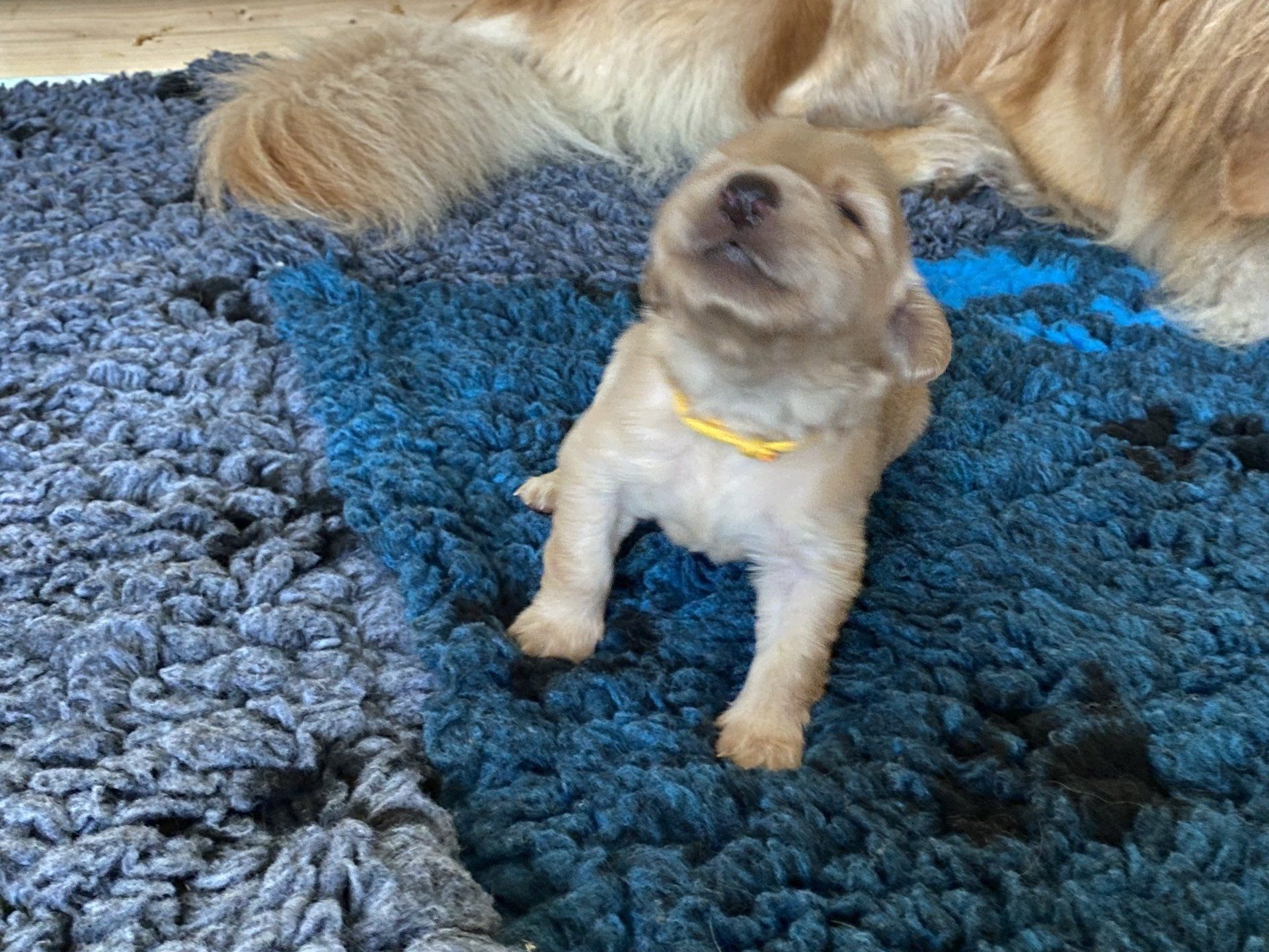 ... das Abenteuer, ich will ein Hovawart werden, ist jetzt schon in der 5ten Woche! Es gilt die Welt zu entdecken, Grenzen auszuloten und manchmal auch einen von der Oma Ida liebevoll auf den "Deckel" zu bekommen. Was für einen Woche, die zweite Wurmkur wurde von allen C-lies als notwendiges Übel akzeptiert. Wir hatten viel Besuch, sogar Jiri und Katarina aus der Tschechei waren zum Welpen knuddeln da und haben für alle kleinen Dinkelhooker ein Willkommensgeschenk mitgebracht. Caspien Senior ist allerdings Zuhause geblieben, die Reise von über 700 km wollten sie dem tollen Papa nicht antun. Caspien Avedante (Sen.) hat mittlerweile schon 32 Nachkommen. Wir sind gespannt, ob die sich auch so toll entwickeln wie unsere kleinen sieben Zwerge... und wir bleiben auf jeden Fall im Kontakt.